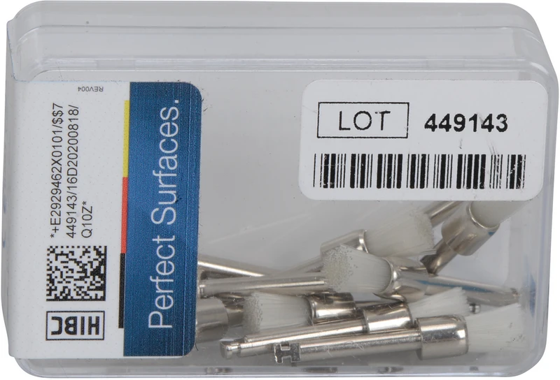 Nylonbürstchen für die Politur von Keramiken, Kompositen, Metallen und zur Prophylaxebehandlung mit Polierpasten.
