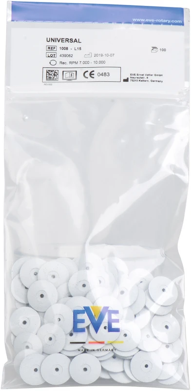 Produktinformationen "EVE UNIVERSAL Packung 100 Stück unmontiert, weiß grob, Figur Linse, 15 x 2,5 mm"