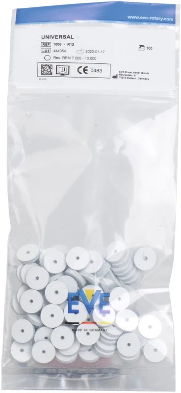Produktinformationen "EVE UNIVERSAL Packung 100 Stück unmontiert, weiß grob, Figur Scheibe, 12 x 2 mm"