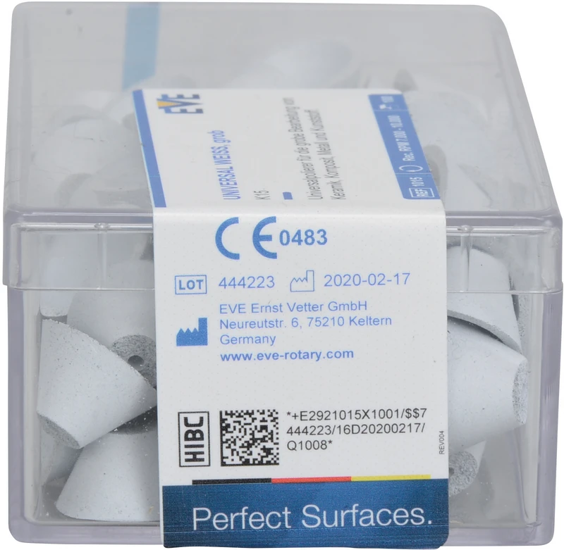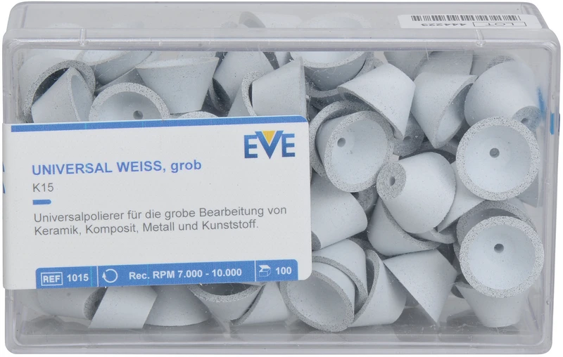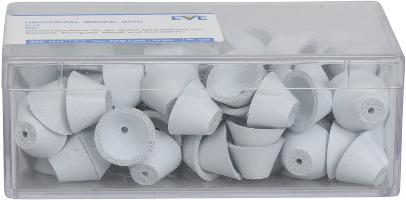 Produktinformationen "EVE UNIVERSAL Packung 100 Stück unmontiert, weiß grob, Figur umgekehrter Kegel, 15 x 9 mm"