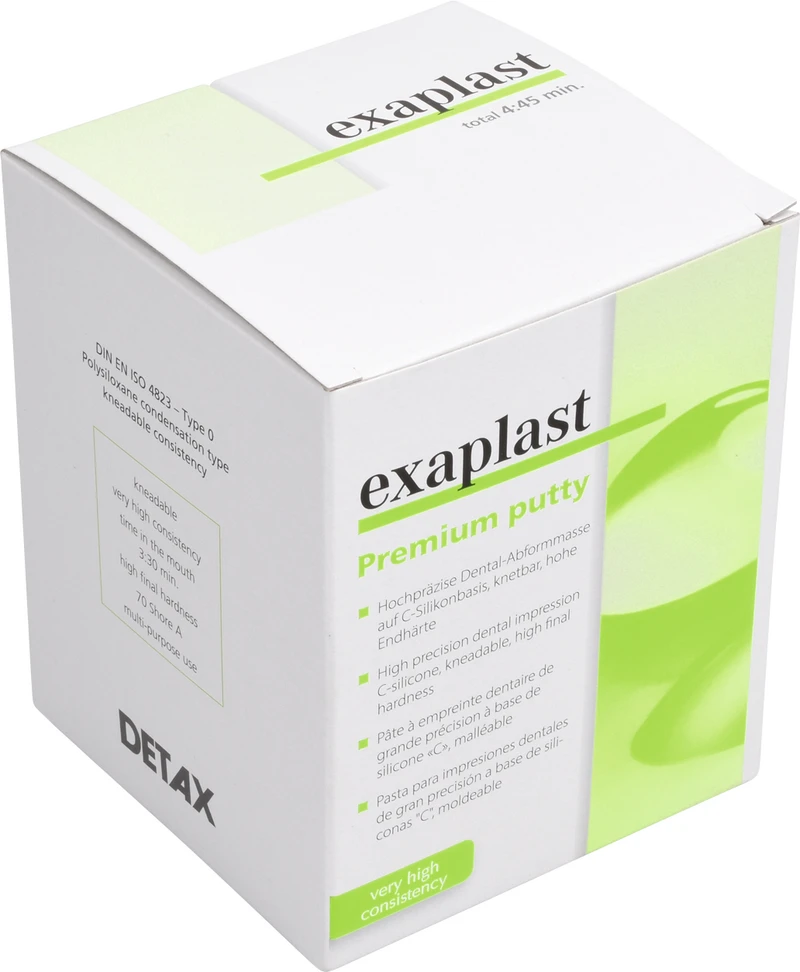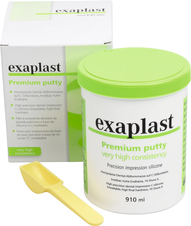- extraplast putty - sehr hohe Konsistenz, knetbar, weichgeschmeidige Ausgangskonsistenz, ideale Endhärte, hochelastisch, besonders dimensionsstabil