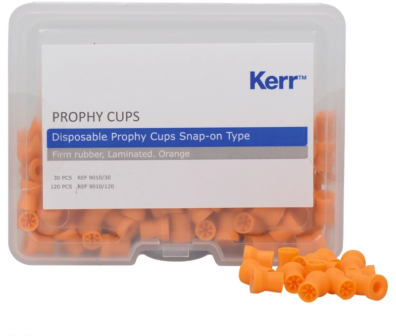Farbige Prophy Cups Packung 120 Stück orange lamellenförmig, hartes Gummi, Snap-On