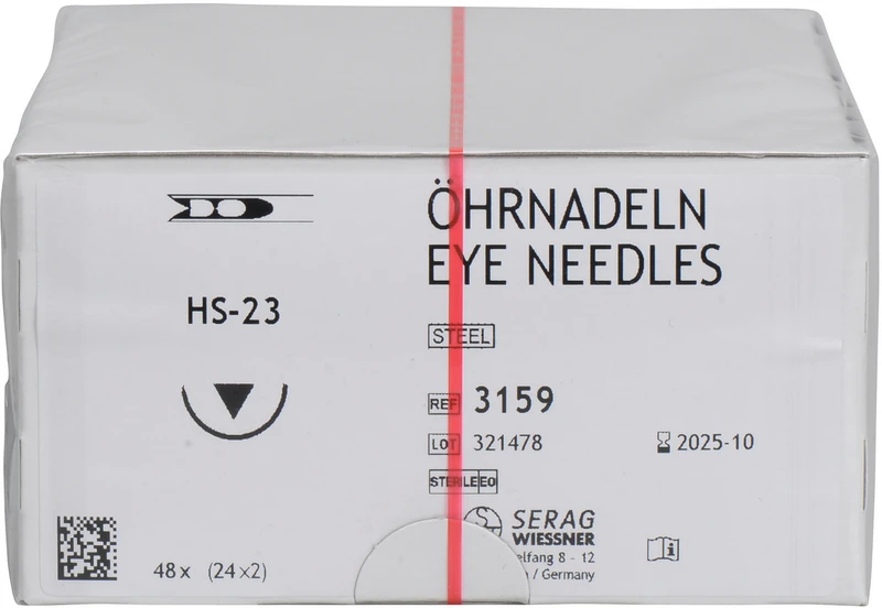 Federöhrnadeln Packung 24 Stück x 2 Nadeln HS-23, 1\2 Kreis, schneidender Nadelkörper, 23 mm