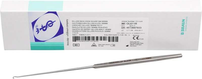 Feine Wundhaken nach Gillies Stück OL611R, klein