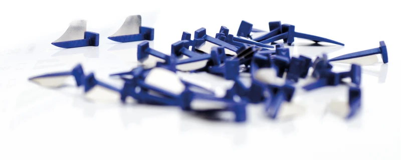 Bei ca. 70 % der Klasse II Präparationen werden Nachbarzähne geschädigt. FenderWedge® schützt die Nachbarzähne während der Präparation. FenderWedge® ist einfach zu platzieren, positionsbeständig während der Präparation und stört nicht im Arbeitsbereich. Die auf den Kunststoffkeilen befestigten Edelstahlplättchen sind bei allen Größen 0,08 mm dünn.