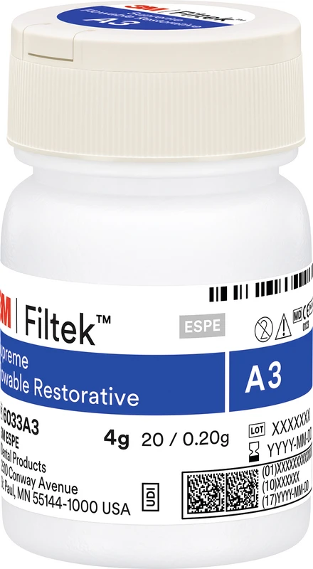 Das 3M Filtek Supreme Flowable Fließfähige Komposit wurde für eine Vielzahl von Indikationen und Techniken entwickelt und bietet langanhaltende Verschleißfestigkeit und Glanzbeständigkeit. Das fließfähige Komposit ist in 12 Farben erhältlich, die auf die Body-Farben von 3M Filtek Universal Restorative und 3M Filtek Supreme XTE Universal Komposit abgestimmt sind.