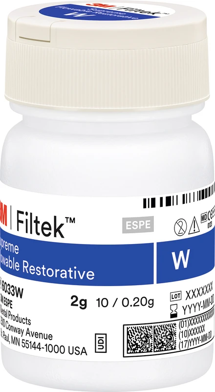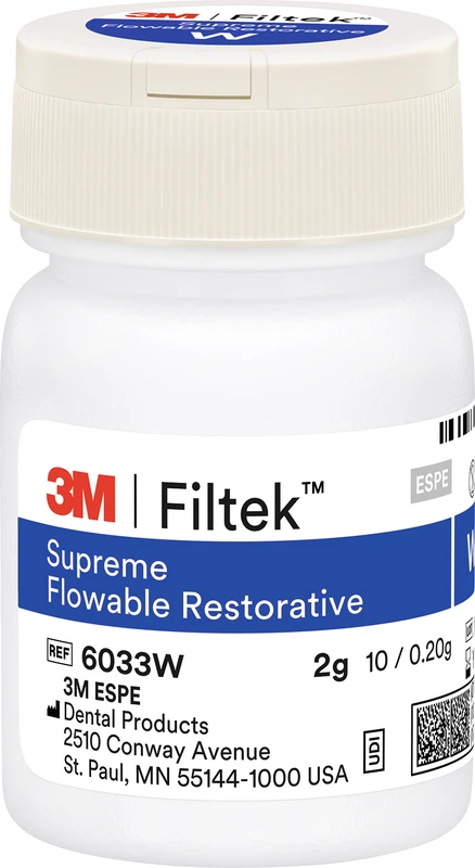 Das 3M Filtek Supreme Flowable Fließfähige Komposit wurde für eine Vielzahl von Indikationen und Techniken entwickelt und bietet langanhaltende Verschleißfestigkeit und Glanzbeständigkeit. Das fließfähige Komposit ist in 12 Farben erhältlich, die auf die Body-Farben von 3M Filtek Universal Restorative und 3M Filtek Supreme XTE Universal Komposit abgestimmt sind.