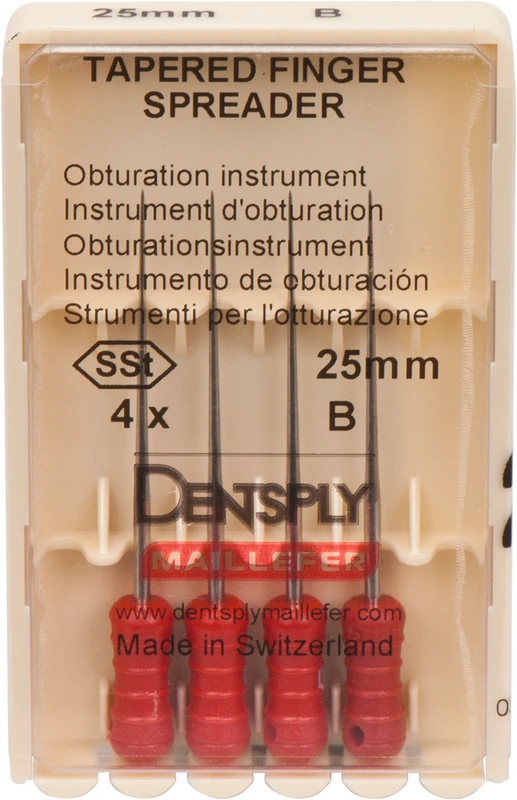 Konische Finger Spreader aus rostfreiem Edelstahl, abgestimmt auf die Guttapercha Hilfsspitzen.