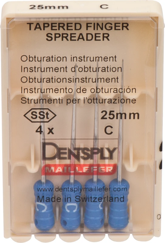 Konische Finger Spreader aus rostfreiem Edelstahl, abgestimmt auf die Guttapercha Hilfsspitzen.
