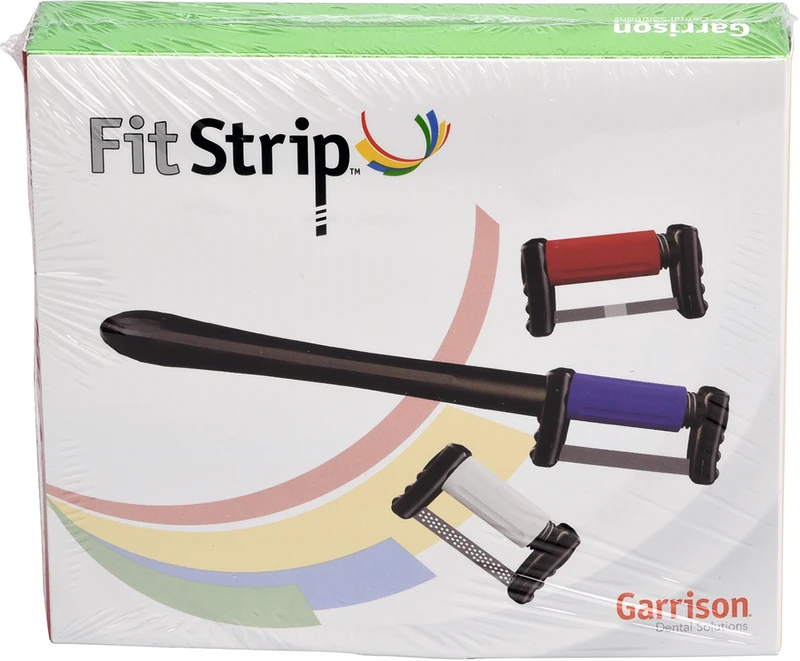 FitStrip eignet sich für die Anwendung bei der approximalen Schmelzreduktion, zur Reduktion von Kontaktpunkten, zum Finieren und Konturieren von Approximalkontakten, zur Entfernung von Zement bzw. zur Reinigung bei Kronen und Brücken sowie zur Trennung von versehentlich verbundenen Zähnen. Alle Streifen sind mit einer einzigartigen Eigenschaft ausgestattet: Durch einfaches Drehen des farbcodierten Zylinders lässt sich der gerade Streifen (für die Reduktion von Kontaktpunkten) in einen gebogenen Streifen (für die approximale Konturierung) verwandeln. Diese simple Handbewegung schont die Muskeln des Behandlers. Der auswechselbare Griff lässt sich leicht an allen FitStrip-Komponenten befestigen, wodurch der Bedien- und Patientenkomfort beträchtlich gesteigert werden. Die Hand des Zahnarztes bleibt außerhalb des Mundes und ermöglicht freie Sicht und ein einfacheres Arbeiten.