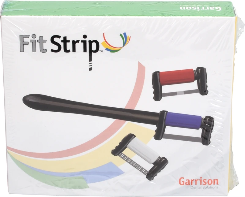 FitStrip eignet sich für die Anwendung bei der approximalen Schmelzreduktion, zur Reduktion von Kontaktpunkten, zum Finieren und Konturieren von Approximalkontakten, zur Entfernung von Zement bzw. zur Reinigung bei Kronen und Brücken sowie zur Trennung von versehentlich verbundenen Zähnen. Alle Streifen sind mit einer einzigartigen Eigenschaft ausgestattet: Durch einfaches Drehen des farbcodierten Zylinders lässt sich der gerade Streifen (für die Reduktion von Kontaktpunkten) in einen gebogenen Streifen (für die approximale Konturierung) verwandeln. Diese simple Handbewegung schont die Muskeln des Behandlers. Der auswechselbare Griff lässt sich leicht an allen FitStrip-Komponenten befestigen, wodurch der Bedien- und Patientenkomfort beträchtlich gesteigert werden. Die Hand des Zahnarztes bleibt außerhalb des Mundes und ermöglicht freie Sicht und ein einfacheres Arbeiten.