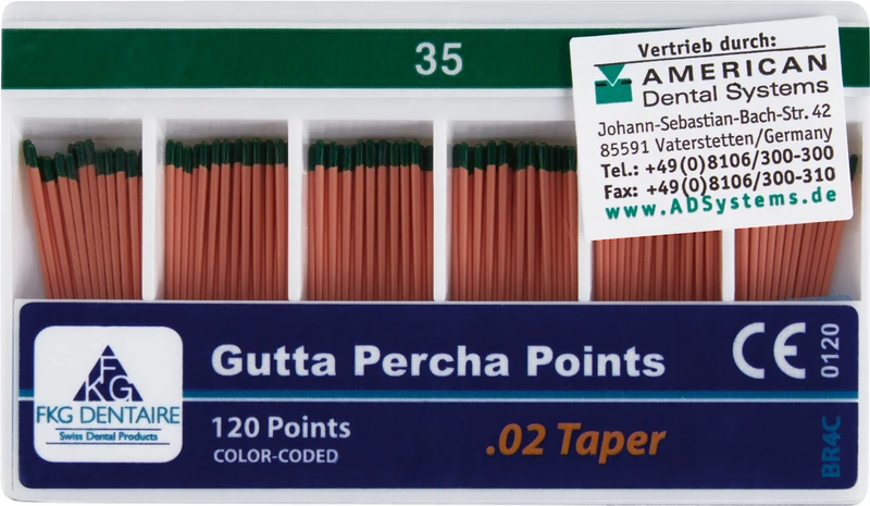 Produktinformationen "FKG Gutta Percha Packung 120 Stück Taper.02 ISO 035"
