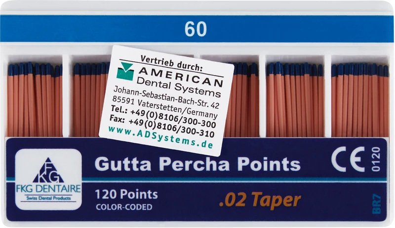 FKG Gutta Percha Packung 120 Stück Taper.02 ISO 060