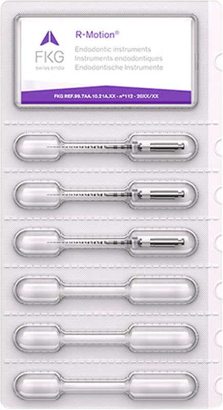 Das FKG R-Motion® reziproke Feilensystem vereint eine verbesserte Instrumentenflexibilität mit einer hohen Beständigkeit gegen zyklische Ermüdung. Gleichzeitig verfolgt das reziproke Feilensystem - wie auch alle anderen Instrumentensysteme aus dem HauseFKG - einen minimalinvasiven Ansatz, bei dem die Anatomie des Wurzelkanals im Vergleich zu herkömmlichen reziproken NiTi-Systemen noch mehr respektiert wird. Das R-Motion® Feilensystem umfasst eine Gleitpfadfeile (R-Motion® Glider) und vier Aufbereitungsinstrumente. Das Highlight: Der R-Motion® Glider verfügt über eine variable Verjüngung des Tapers, wodurch man die Arbeitslänge bei gleichzeitiger koronaler Öffnung erreicht. Dank des exklusiven Designs und der Wärmebehandlung verfügen die R-Motion® Instrumente über eine überlegene Schneidleistung und einen reduzierten Verschraubungseffekt und erlauben somit ein sanftes Arbeiten sowie mehr Kontrolle bei der Behandlung.