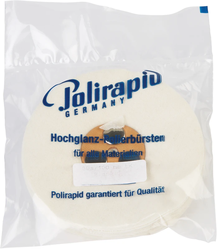 Flanellschwabbel mit konischem Kunststoff (KK)- oder Lederkern (LK) in verschiedenen Durchmessern und Stärken. Polierscheiben aus weichem Flanellstoff.