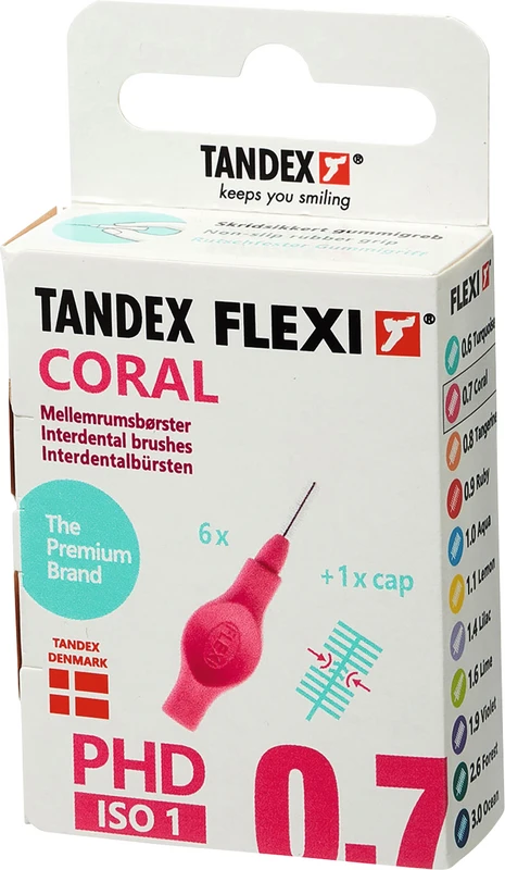 FLEXI® Interdentalbürsten PHD Packung 6 Stück coral, PHD 0.7 (Ø 0,4 mm), ISO 1