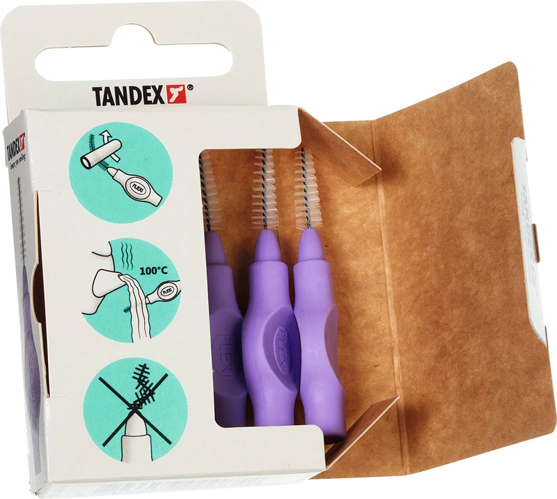 Der ergonomische Gummigriff und die weiche Soft-Griffschicht, ermöglicht einen sicheren Halt sogar wenn die Finger feucht sind. Der flexible Griff ist frei von Phtalate und trägt zu einer bequemen Reinigung in allen Interdentalräumen bei. Der kunststoffbeschichtete Draht ist ausdauernd und schützt Zahnfleisch und Zahnschmelz. 11 farbkodierte Gröen - Besonders für die tägliche Reinigung von Interdentalräumen, festen Zahnspangen und Zähnen mit Furkationsbefall. Zwei Packungsgröen aus recyclebarer FSC-zertifizierter Pappe: 6 Stück einschl. Schutzhaube. 25 Stück Value Pack einschl. Schutzhauben. FLEXI® Interdentalbürsten PHD sind in Zusammenarbeit mit dänischen Zahnärzten und Prophylaxe Assistenten entwickelt worden, um den Patienten das optimale Hilfsmittel für die Zahnzwischenraumpflege empfehlen zu können.