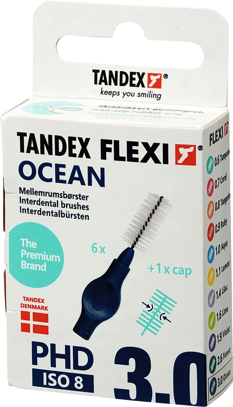 Produktinformationen "FLEXI® Interdentalbürsten PHD Packung 6 Stück ocean, PHD 3.0 (Ø 1,2 mm), ISO 8"