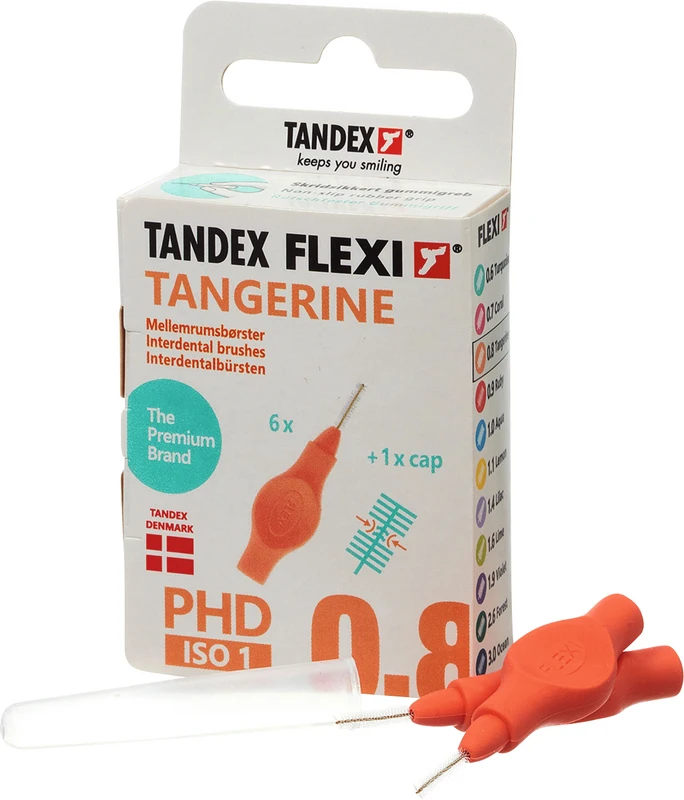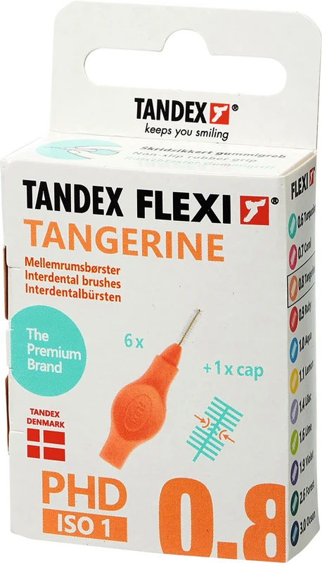 FLEXI® Interdentalbürsten PHD Packung 6 Stück tangerine, PHD 0.8 (Ø 0,45 mm), ISO 1