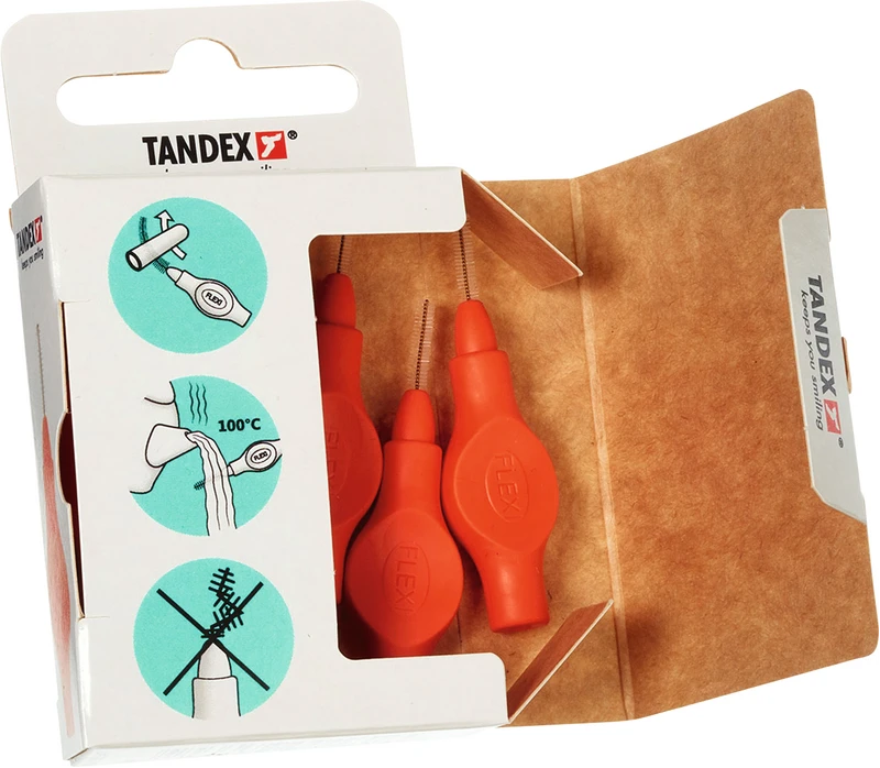 Der ergonomische Gummigriff und die weiche Soft-Griffschicht, ermöglicht einen sicheren Halt sogar wenn die Finger feucht sind. Der flexible Griff ist frei von Phtalate und trägt zu einer bequemen Reinigung in allen Interdentalräumen bei. Der kunststoffbeschichtete Draht ist ausdauernd und schützt Zahnfleisch und Zahnschmelz. 11 farbkodierte Gröen - Besonders für die tägliche Reinigung von Interdentalräumen, festen Zahnspangen und Zähnen mit Furkationsbefall. Zwei Packungsgröen aus recyclebarer FSC-zertifizierter Pappe: 6 Stück einschl. Schutzhaube. 25 Stück Value Pack einschl. Schutzhauben. FLEXI® Interdentalbürsten PHD sind in Zusammenarbeit mit dänischen Zahnärzten und Prophylaxe Assistenten entwickelt worden, um den Patienten das optimale Hilfsmittel für die Zahnzwischenraumpflege empfehlen zu können.