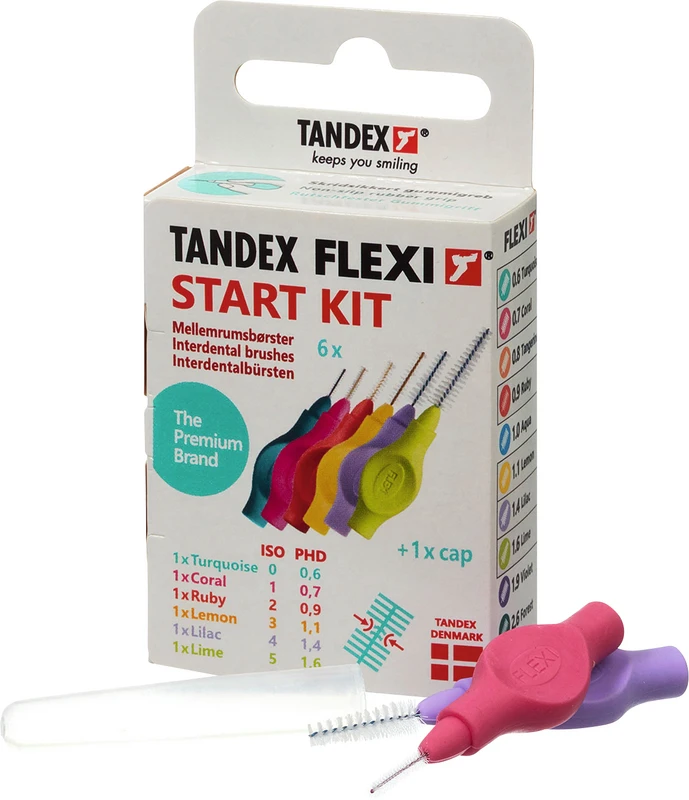 Der ergonomische Gummigriff und die weiche Soft-Griffschicht, ermöglicht einen sicheren Halt sogar wenn die Finger feucht sind. Der flexible Griff ist frei von Phtalate und trägt zu einer bequemen Reinigung in allen Interdentalräumen bei. Der kunststoffbeschichtete Draht ist ausdauernd und schützt Zahnfleisch und Zahnschmelz. 11 farbkodierte Gröen - Besonders für die tägliche Reinigung von Interdentalräumen, festen Zahnspangen und Zähnen mit Furkationsbefall. Zwei Packungsgröen aus recyclebarer FSC-zertifizierter Pappe: 6 Stück einschl. Schutzhaube. 25 Stück Value Pack einschl. Schutzhauben. FLEXI® Interdentalbürsten PHD sind in Zusammenarbeit mit dänischen Zahnärzten und Prophylaxe Assistenten entwickelt worden, um den Patienten das optimale Hilfsmittel für die Zahnzwischenraumpflege empfehlen zu können.