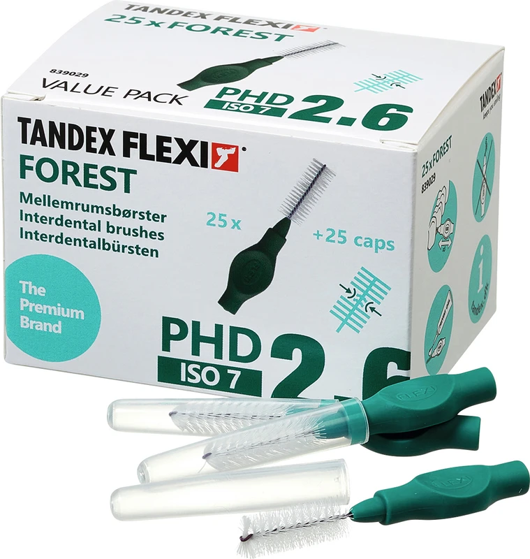 Produktinformationen "FLEXI® Interdentalbürsten PHD Value Pack 25 Stück forest, PHD 2.6 (Ø 1,2 mm), ISO 7"