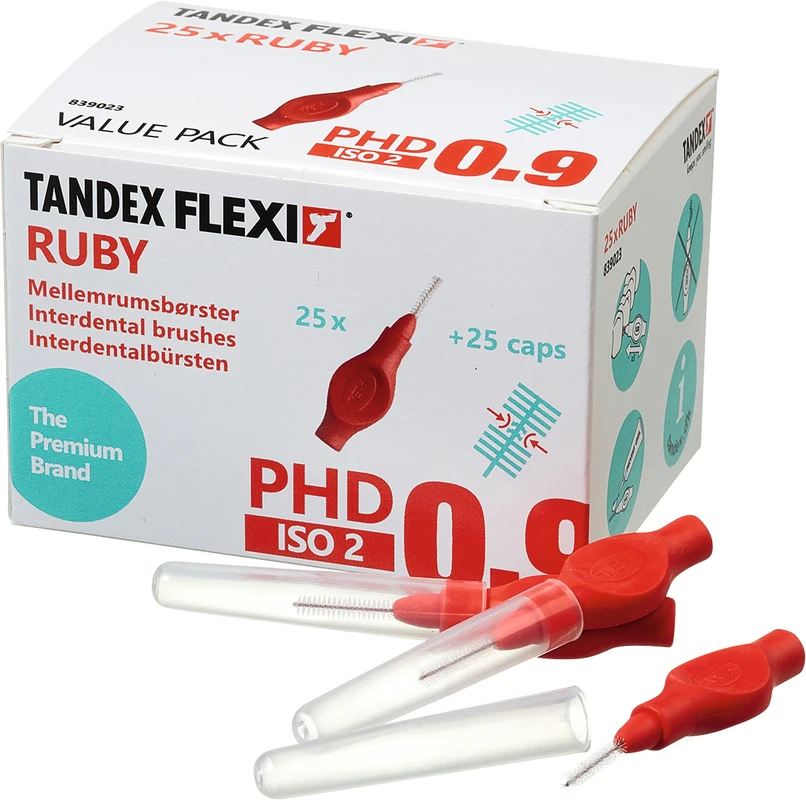 FLEXI® Interdentalbürsten PHD Value Pack 25 Stück ruby, PHD 0.9 (Ø 0,5 mm), ISO 2
