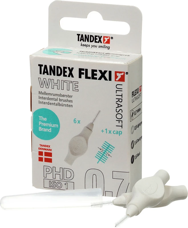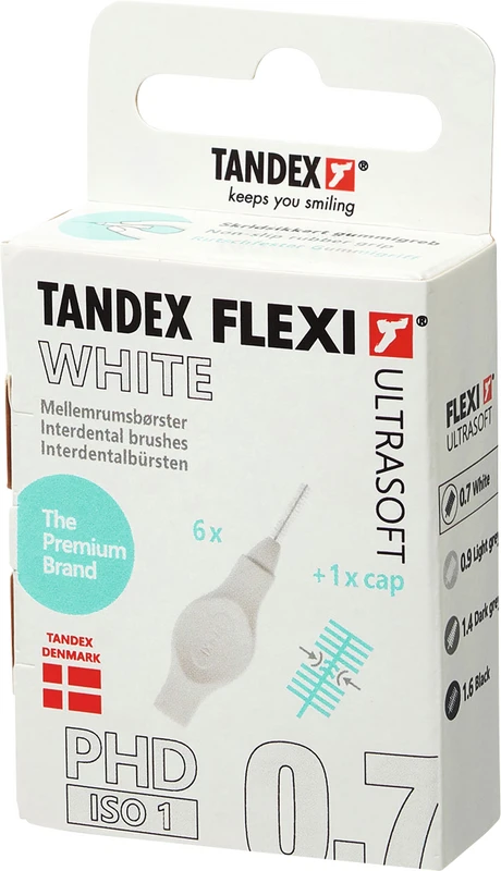 FLEXI® Ultrasoft PHD - Interdentalbürste mit sehr weichen Bürsten zur Pflege von empfindlichen Stellen, z.B. nach Zahnoperation, Chemotherapie oder für die Implantatpflege. FLEXI® Ultrasoft PHD hat einen weichen Phthalat-freien biegsamen Griff mit Kunststoff ummantelten Draht, für die präzise und schonende Reinigung. In 4 verschiedenen Gröen und als 6 oder 25 Stück Packung erhältlich.