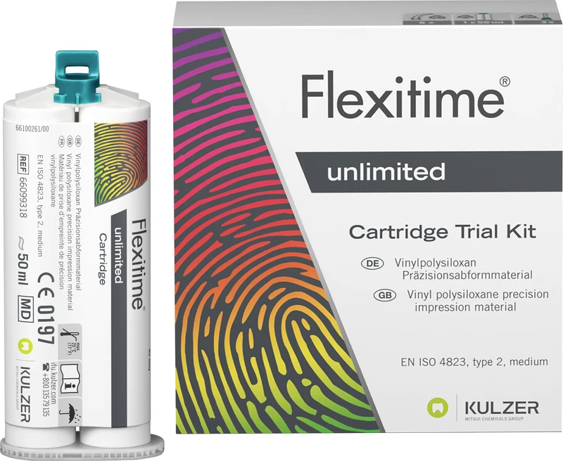 Produktinformationen "Flexitime® unlimited Trial Kit 50 ml Kartusche, 3 Mixing Tips, 6 Intraoral Tips, 1 Gebrauchsinformation, 1 Guide"