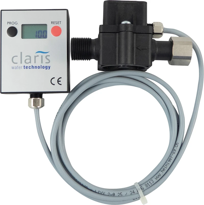 - Der Flow-Sensor misst die durchgeflossene Wassermenge und signalisiert optisch und akustisch den bevorstehenden Filterwechsel
