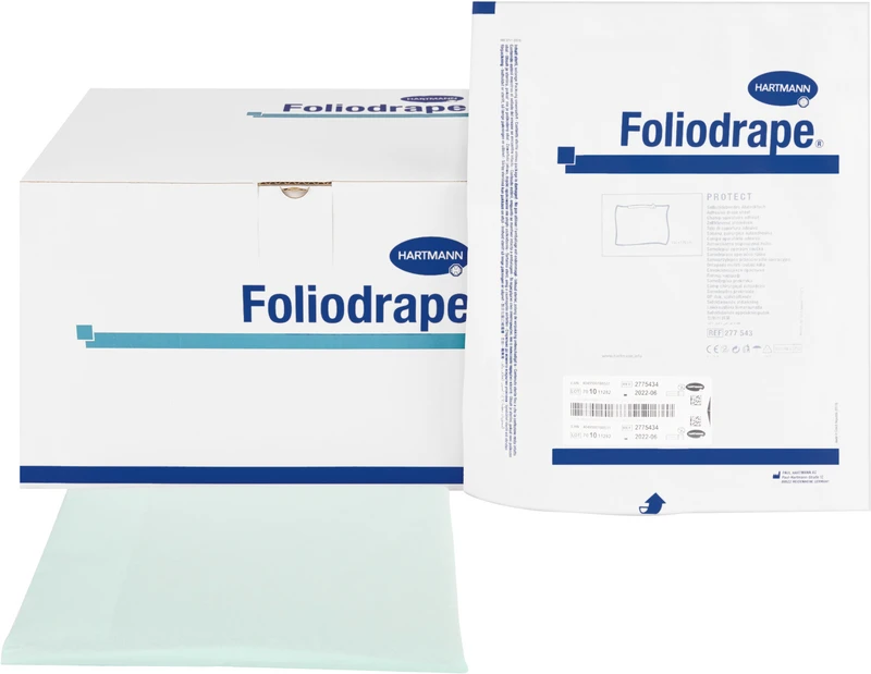 Mit sicher haftendem Klebestreifen zur schnellen Fixierung und exakten Begrenzung des Inzisionsbereiches, undurchlässig für Feuchtigkeit und Keime, abriebfest und äußerst fusselarm, gut drapierfähig.