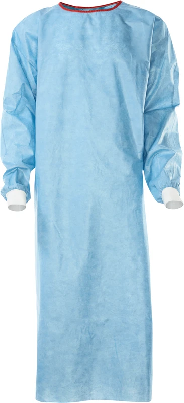 Halbarmverstärkter OP-Wickelmantel mit undurchlässiger Verstärkungszone im Unterarm- und Brustbereich; besonders breite Überlappung der Rückenpartie; mit dem zum Patent angemeldeten Combitape®-Verschlusssystem welches überall im Rückenbereich zuverlässig haftet und eine flexible Anpassung des Halsausschnittes gewährleistet; mit rotem Halsausschnitt (verstärkt) zur besseren Identifikation im OP; für Operationen mit hohem Flüssigkeitsaufkommen; mit SMS-Einschlag & Papierhandtüchern; einzeln verpackt.