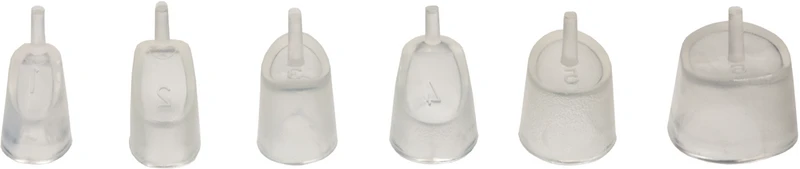 Elastische, transparente Formkappen, mit zentralem Haltestift, für den direkten Dentinaufbau sind in 6 Formen erhältlich, mit denen ein leichter Dentinaufbau mit minimalem Ausschluss ermöglicht wird. Da die Formkappen transparent sind, ist eine Lichthärtung durch den Kern hindurch möglich und dies erlaubt vollständiges Abbinden, sowohl bei lichtgehärteten, als auch bei zweifach Gehärteten Dentinmaterialien.