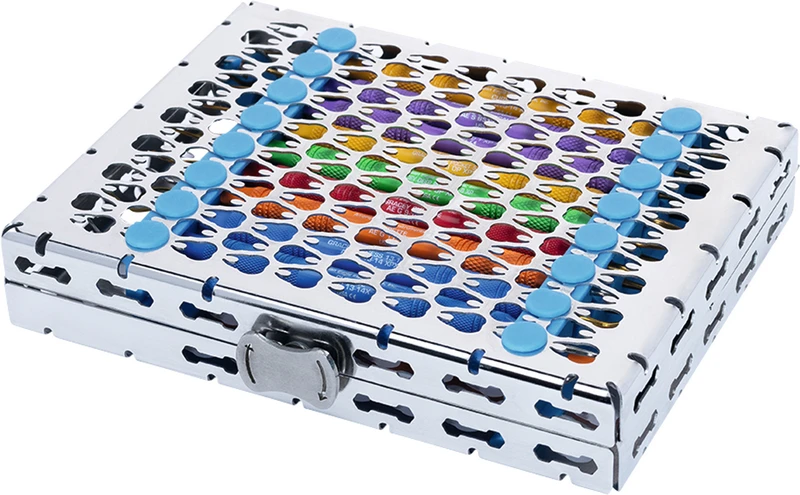 - Das neue und innovative lasergeschnittene Muster garantiert maximale Effizienz während des Reinigungs- und Sterilisationsprozesses und gewährleistet gleichzeitig Stabilität und Festigkeit der Kassette.