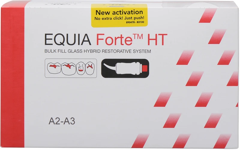 EQUIA Forte HT Langzeit-Glas-Hybrid-Restaurationssystem für kaudruckbelastete Klasse I und II* Füllungen. EQUIA Forte HT ist der innovative Neuzugang im Glas-Hybrid-Sortiment von GC. Die Hybrid-Technologie steht für: Längere Verarbeitungszeit, höhere Stabilität und verbesserte Ästhetik. Darüber hinaus eignet es sich ebenfalls als Amalgamalternative.