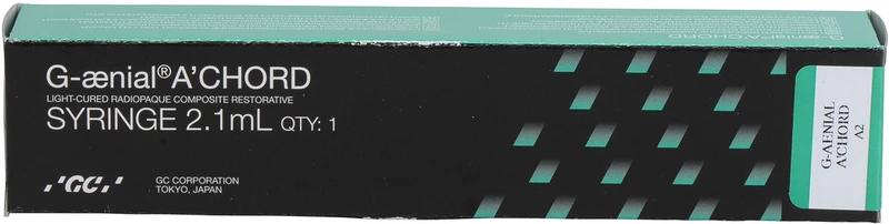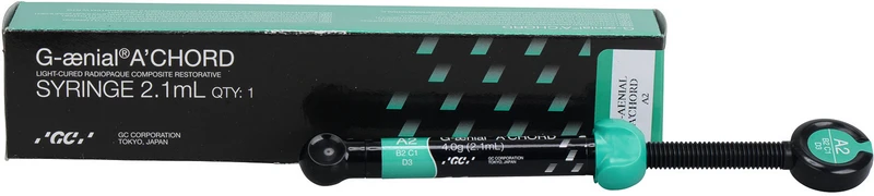 Lichthärtendes Universal-Composite-Füllungsmaterial. GC freut sich Ihnen GC G-ænial® A´CHORD, ein neues universelles Composite-Restaurationsmaterial mit einem vereinfachten Farbsystem vorzustellen drüfen: GC G-ænial® A´CHORD dank perfekter Lichtinteraktion innerhalb des Materialspektrums übergangslos in die verbleibende natürliche Zahnhartsubstanz. Universal-Farben in einer Opazitätsstufe zur Erzielung einer metameren Übereinstimmung und natürlichen Anpassungen - auch ohne Opaken oder Schmelzfarben.