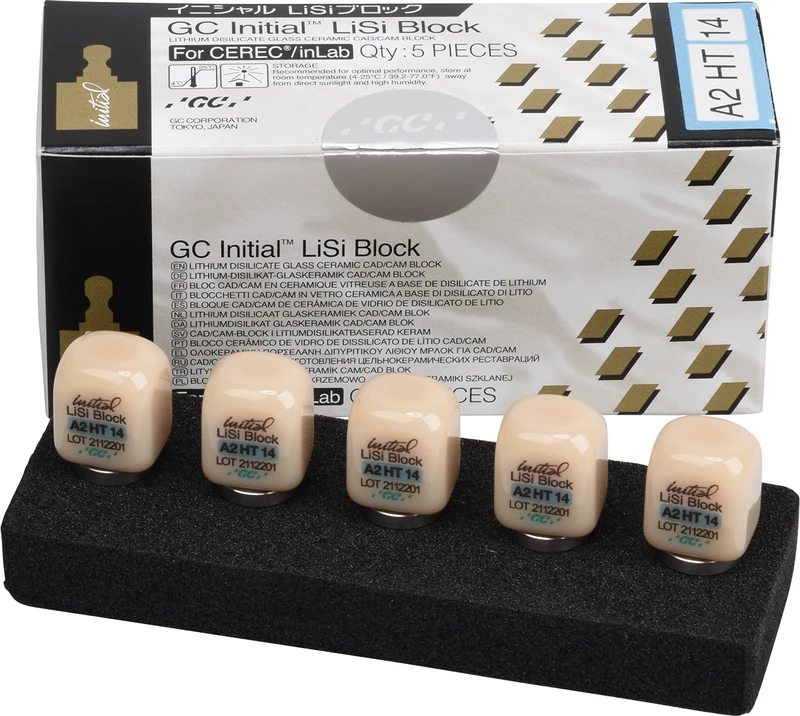 GC Initial LiSi Block für CEREC Packung 5 Stück Größe 14, A2 HT