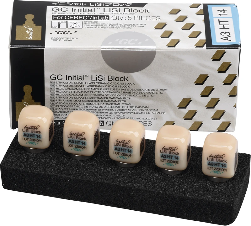 GC Initial LiSi Block für CEREC Packung 5 Stück Größe 14, A3 HT