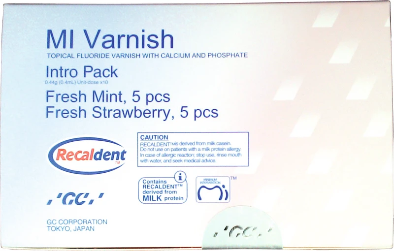 Dank der patentierten Recaldent-Technologie verschafft MI Varnish Patienten einen Vorsprung beim Kariesschutz, wenn Fluorid, Calcium und Phosphat sich zu einem stabilen Coating verbinden. Der neutrale pH-Wert von 6,6 verbessert die Säureresistenz des Zahnschmelzes und verhindert Mineralverlust. In saurer Umgebung lösen sich Calcium und Fluorid aus der Schutzschicht und die Zähne sind daraufhin den Säuren nicht mehr direkt ausgesetzt.