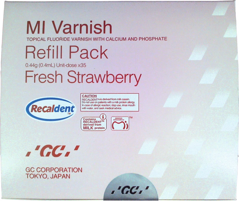 Dank der patentierten Recaldent-Technologie verschafft MI Varnish Patienten einen Vorsprung beim Kariesschutz, wenn Fluorid, Calcium und Phosphat sich zu einem stabilen Coating verbinden. Der neutrale pH-Wert von 6,6 verbessert die Säureresistenz des Zahnschmelzes und verhindert Mineralverlust. In saurer Umgebung lösen sich Calcium und Fluorid aus der Schutzschicht und die Zähne sind daraufhin den Säuren nicht mehr direkt ausgesetzt.