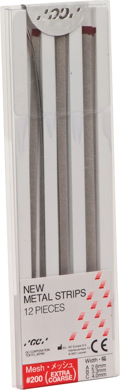Produktinformationen "GC NEW METAL STRIPS Packung 12 Stück (4 x 2,6 mm, 4 x 3,3 mm, 4 x 4 mm), Körnung 200"