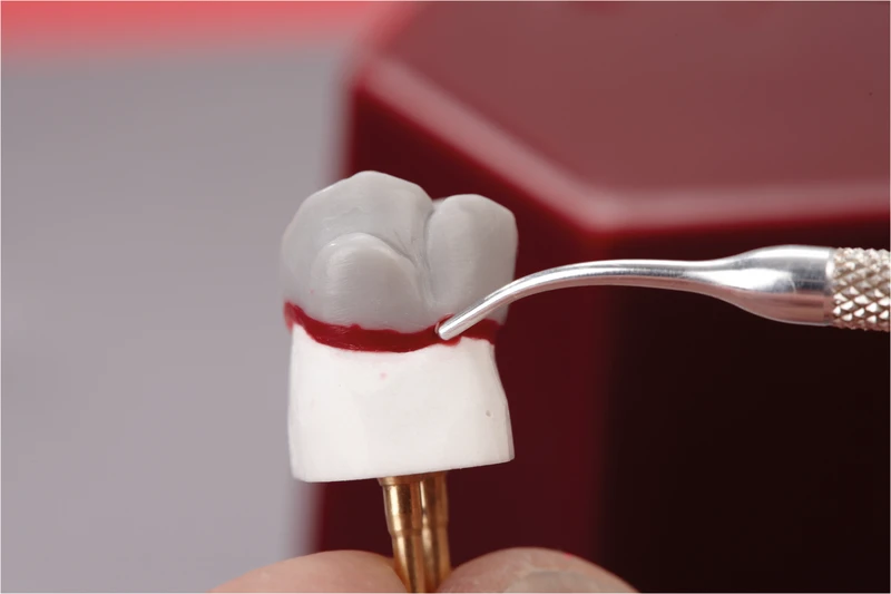 Bleitotes Wachs für die Kronenrandgestaltung. Niedrige Schrumpfung. Besonders stabil. Exakt und hauchdünn an der Präparationsgrenze adaptierbar.