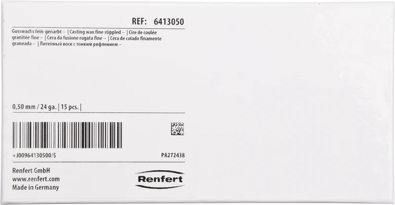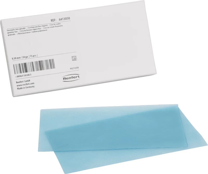 Plattenwachs für den Modellguss. Druck- und reißfeste Qualität. Leichte Adaptierung an das Einbetmassenmodel.