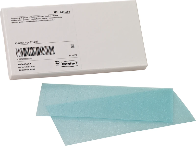 Plattenwachs für den Modellguss. Druck- und reißfeste Qualität. Leichte Adaptierung an das Einbetmassenmodel.