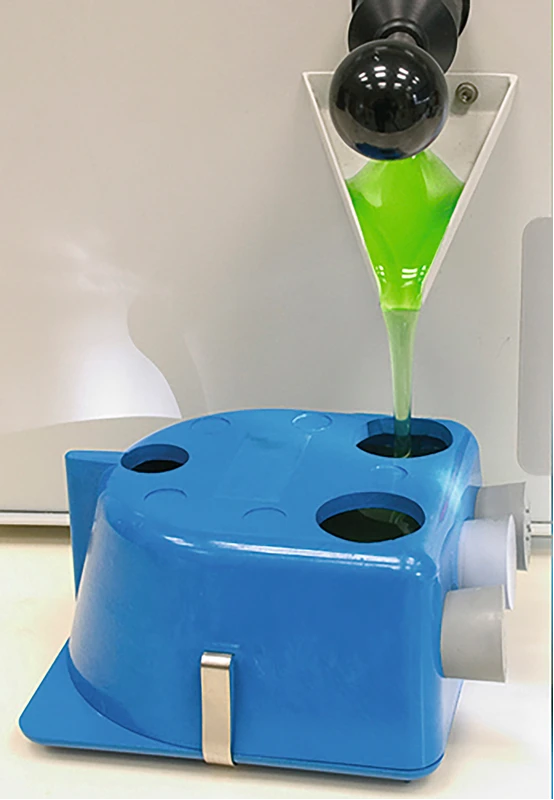 Gießküvette mit 2 Kanalschneidern.
