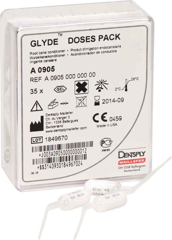 Glyde FILE PREP ist in Einwegdosen zu je 0,5 ml lieferbar. Zur Verhinderung von Kreuzkontamination.