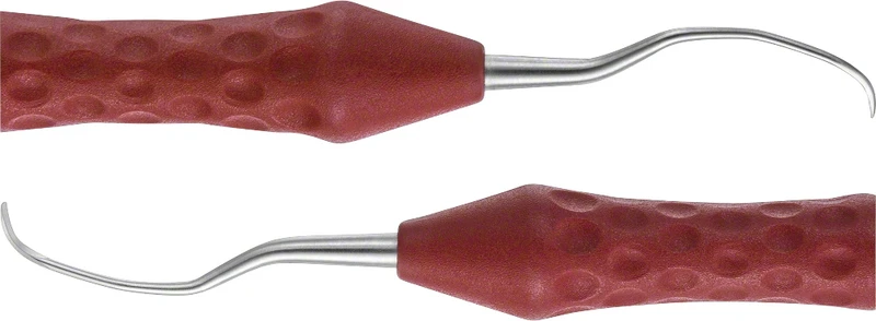 Stück Kürette Figur 11/12, 175 mm, Prämolaren, Molaren, mesial/distal, gewinkelt, ergonomischer Griff, PEEK Griff, rot