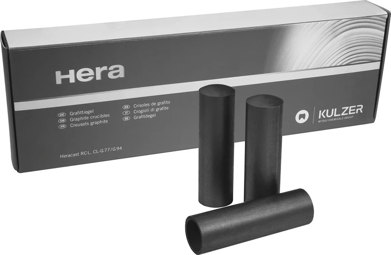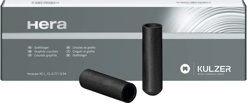 Von den kohlenstoffhaltigen Tiegelmaterialien für die Gruppe der hochgoldhaltigen Legierungen weist Grafit die besten Eigenschaften auf. Durch ein besonderes Herstellungsverfahren sind Grafittiegel von Kulzer frei von jeglichen legierungsschädigenden Zusätzen. Sie besitzen eine hohe mechanische Stabilität und Temperaturwechselbeständigkeit, eine gute Wärmeleitfähigkeit und haben ein gleichmäßiges Abbrandverhalten, wodurch bei angemessener Standzeit die gewünschte Schutzgasatmosphäre über der Schmelze erzeugt wird.