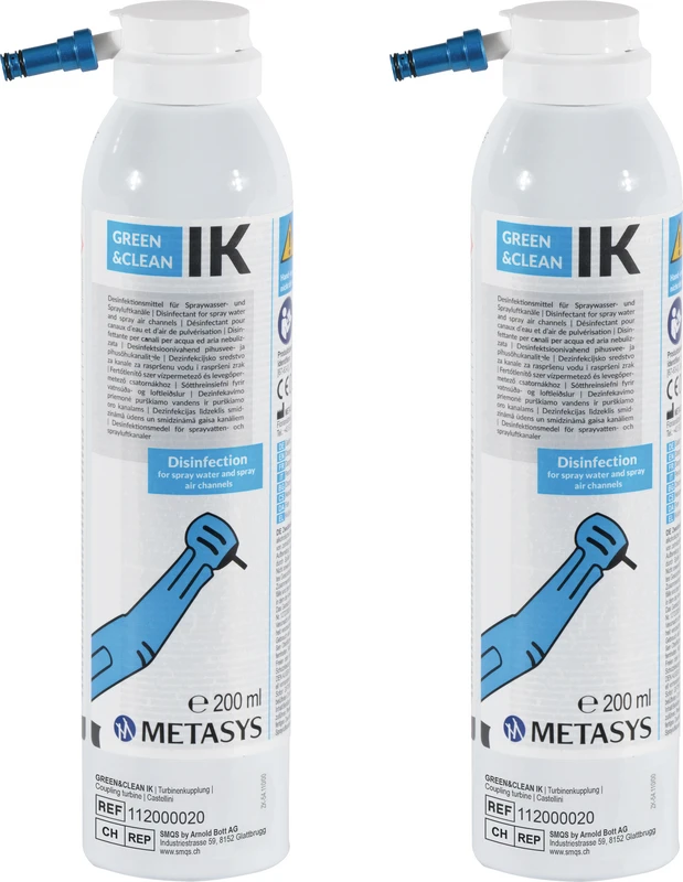 Gebrauchsfertiger, alkoholischer Desinfektionsspray für die Spraywasser- und Sprayluftkanäle von Hand- & Winkelstücken und Turbinen.