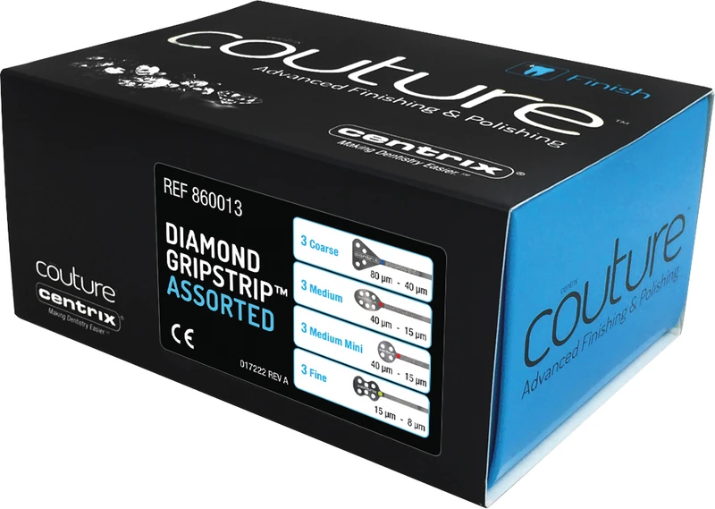 Die proximalen GripStrip Schleif- und Polierstreifen sind diamantbeschichtet, um Restaurationen in proximalen Bereichen präzise schleifen und polieren zu können. Da unsere Streifen über zwei unterschiedliche Körnungsbereiche verfügen, eine gröbere Körnung für das Schleifen und Entfernen von Materialien sowie eine feinere Körnung für den Poliervorgang, können Sie mit nur einem Instrument schleifen und polieren.